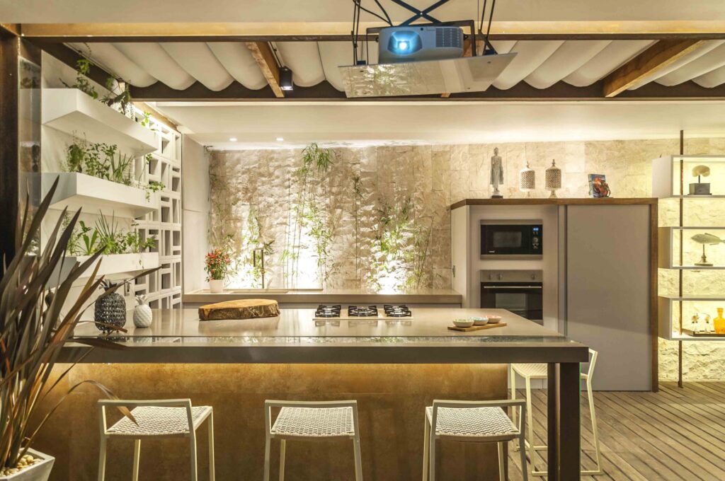Os revestimentos em bambu são bonitos e naturais, o que confere aos espaços um ar de sotifiscação e elegância.
